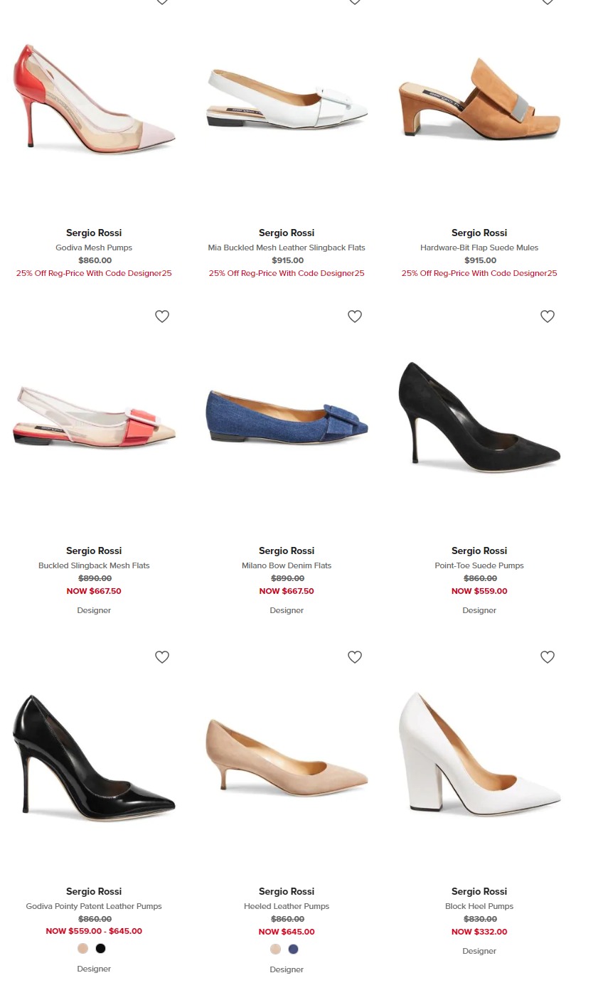 Sergio Rossi 方头穆勒鞋、尖头平底鞋、高跟鞋4折 332加元