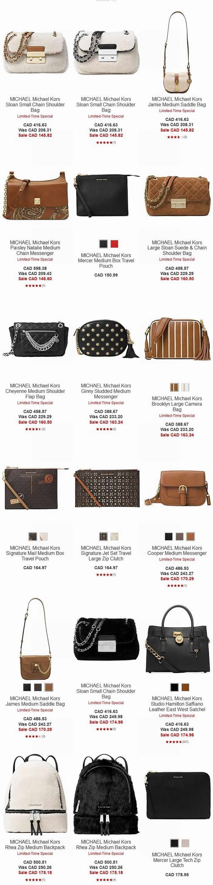 Macy's网店销售,精选大量 Michael Kors 美包、背包等特价销售,额外再打7.5折,显示价格已经打折,多款折后仅售3.5折,付款页使用折扣码:DUTYFREE 免关税,运费约20加元左右,支持直邮中国+支付宝,数量有限,售完为止,点击进入订购页面区