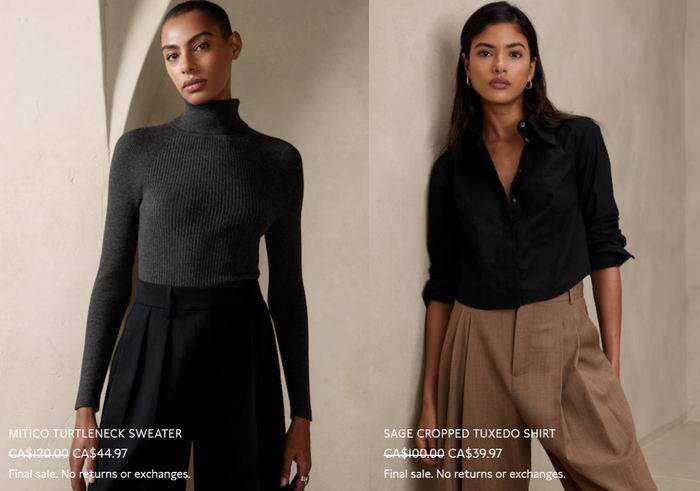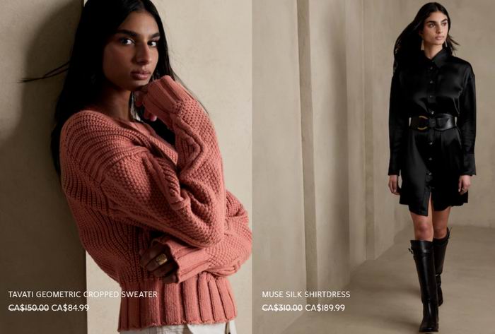 Banana Republic网店销售,精选男女时尚毛衣、开衫、西装、鞋靴3.4折起,满50加元包邮,点击进入订购页面。