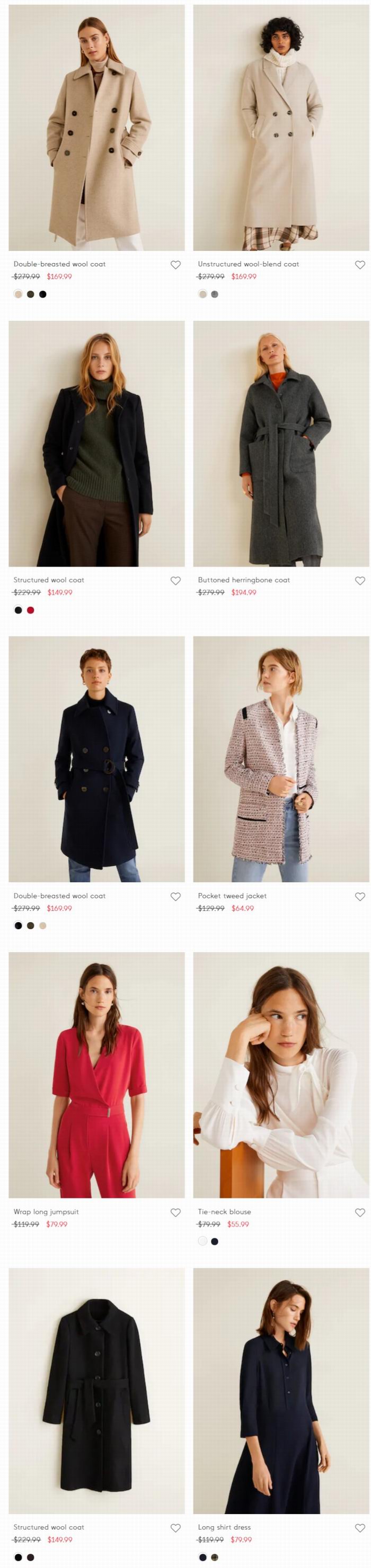 Mango网店销售, 精选秋冬气质毛衣、大衣 3折起特卖,满50加元包邮,点击进入订购页面。