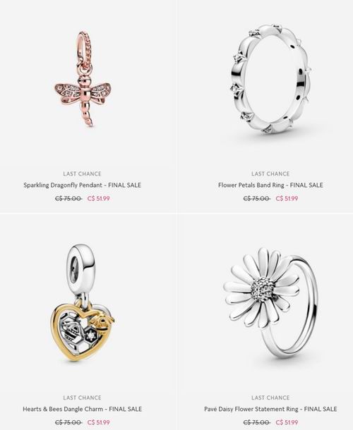 Pandora网店销售,精美饰品7折,满75加元包邮,点击进入订购页面。