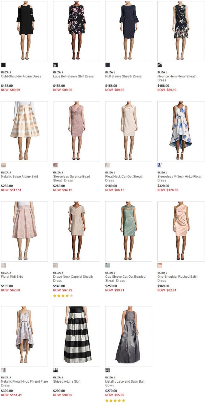 The Bay网店销售,精选 ELIZA J 2017初秋女款服饰2折 55.99加元起特卖,使用折扣码:GIVE 全场额外8.5折,若通过HBC卡结账则额外8折,满99加元包邮,点击进入订购页面。
