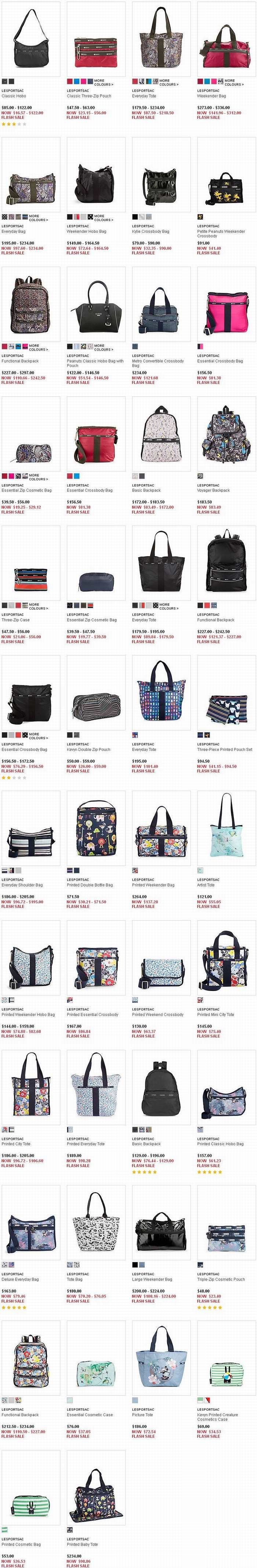 The Bay网店销售,精选46款 LeSportsac 超可爱卡通潮包、时尚手袋、背包、妈咪尿片包等1.9折起限时特卖,运费5.95-9.95元,全站满99元包邮。点击进入订购页面。