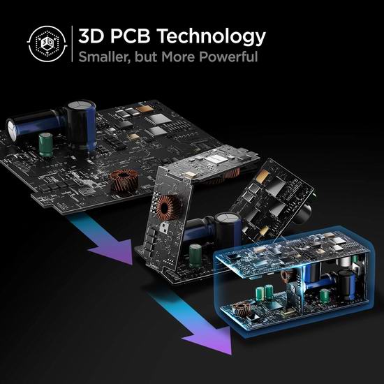 采用先进的 3D PCB 技术,体积减小39%,却能提供 120W 的输出功率,足以同时为两台14英寸 MacBook Pro 笔记本电脑充电。采用升级第三代氮化镓技术,能最大限度地降低充电时的纹波噪声,从而保护您和您的设备免受潜在损害,发热量也更低。内置2个USB-C充电口和2个USB-A充电口,单个 USB-C 端口输出功率高达 100W,不到一小时即可将 13 英寸 MacBook Pro 的电量充至 50%。单个 USB-A 端口可为手机提供高达 18W 的快速充电。