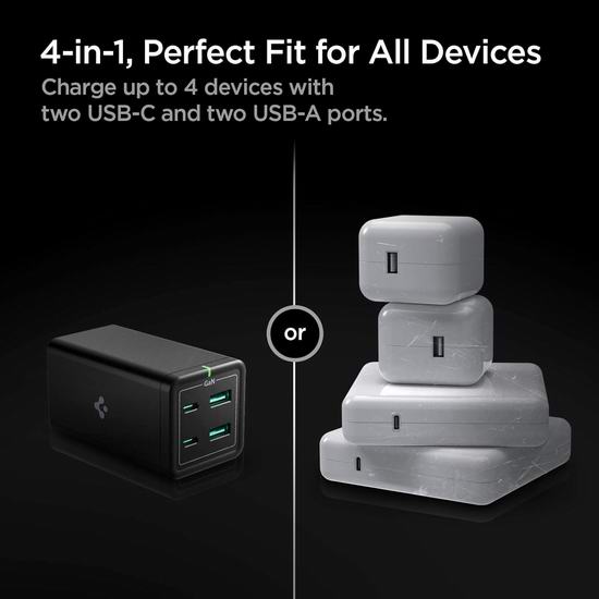 历史新低!Spigen 120W GaN III PD快充 4口USB充电器3.7折 36.99加元包邮!