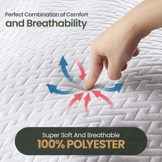 这款竹纤维床垫保护罩,适用于厚度17英寸以内的床垫。采用贴合式设计,四周均有松紧带,确保牢固贴合固定在床垫上。防水设计,可有效防止液体泼洒、汗渍和其他液体渗入床垫。能有效吸收水分,保持床垫清洁干爽,延长其使用寿命。保护罩兼具舒适性、保护性和透气性。其柔软、光滑、凉爽的表面确保您拥有安稳的睡眠。可冷水轻柔机洗,低温烘干,请勿熨烫、漂白或使用衣物柔顺剂。