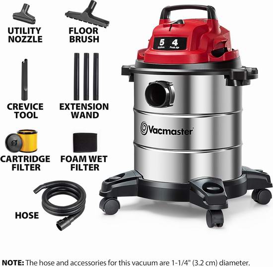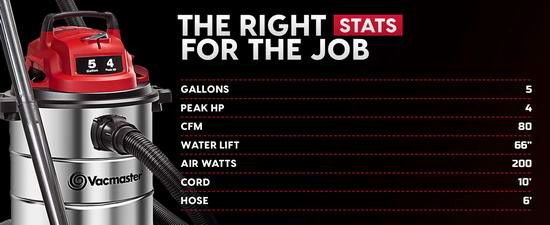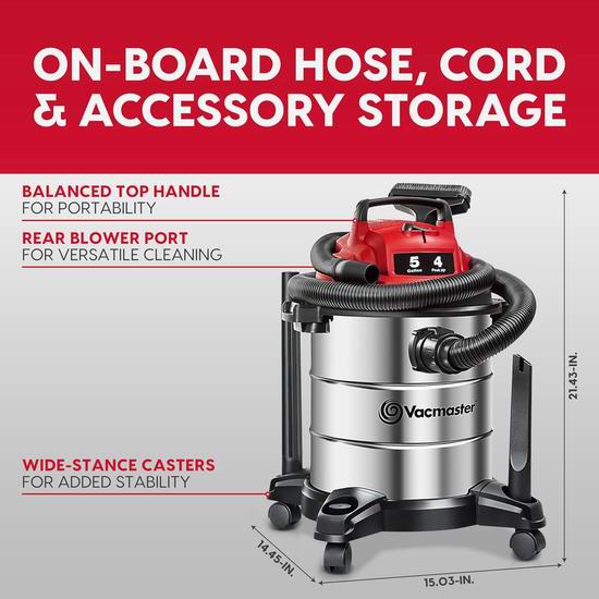 历史新低!Vacmaster VOC508S 1101 4马力 二合一 不锈钢吹扫机/干湿两用吸尘器7.3折 76.81加元包邮!