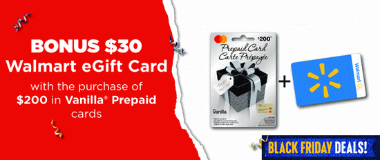 Walmart店内活动,10月2日-3日(周四至周五)期间,在Walmart店内购买价值100加元Vanilla预付费信用卡,送价值15加元Walmart电子礼品卡;