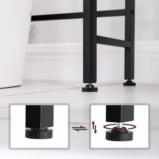此款置物架采用金属结构,棕黑质朴木纹刨花搁板,复古工业风设计,3层结构,持久耐用,适合放在马桶后方增加卫生间收纳空间。外形尺寸为24.9D x 63W x 165.1H厘米。