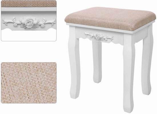 VASAGLE URDT25W 白色复古梳妆台桌椅套装 169.99加元包邮!