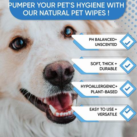 采用植物基配方与加厚柔软无纺布,能安全温和地去除宠物污垢和异味。每包100片装(2盒旅行装),翻盖设计便于保持湿润,适合清洁狗狗的爪子、眼睛、鼻子、臀部、耳朵及全身,是日常护理、无水干洗或外出旅行的便捷选择。