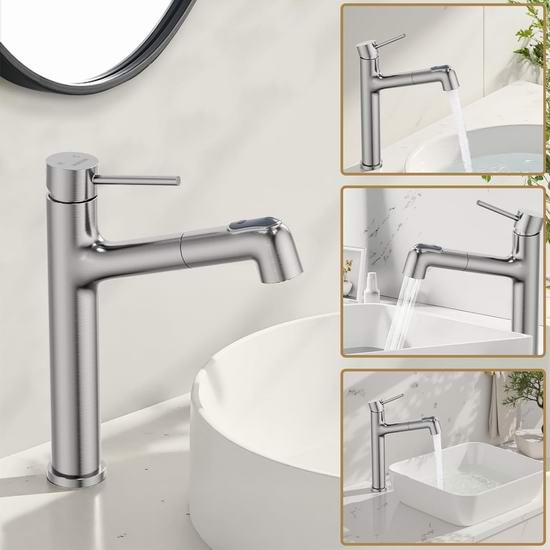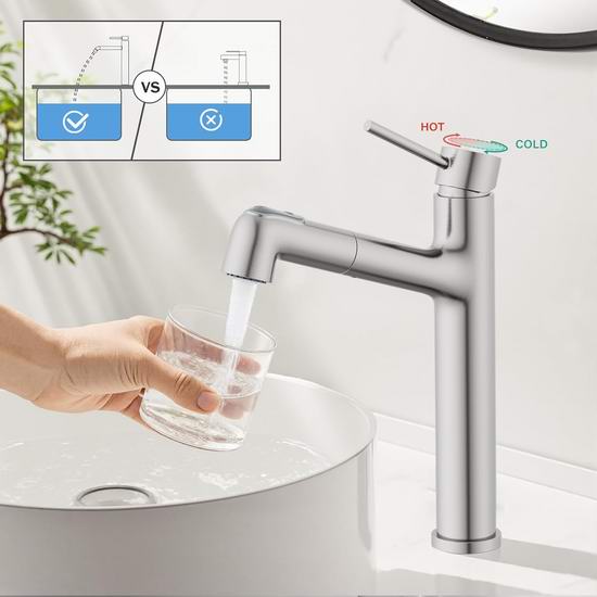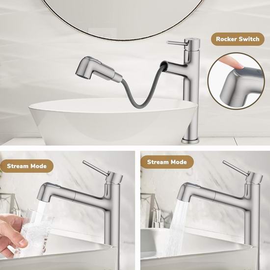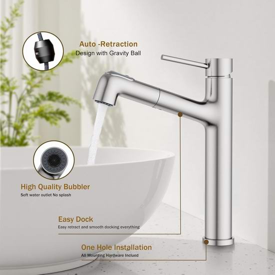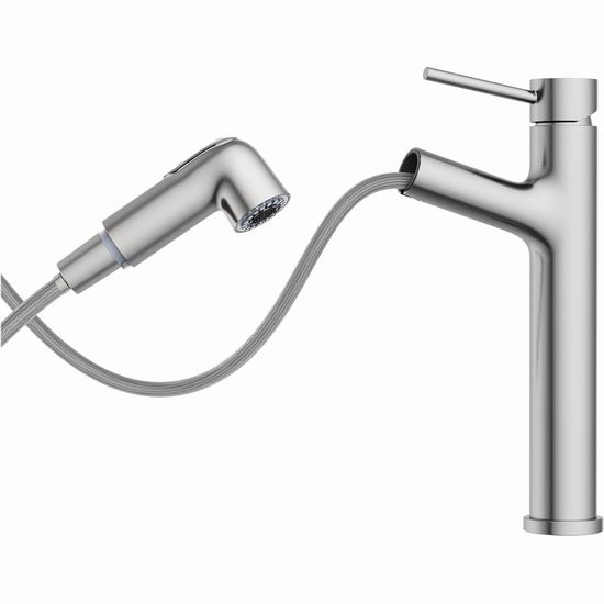 历史新低!Hurran 拉丝镀镍 可拔出式浴室水龙头5.5折 39.99加元包邮!