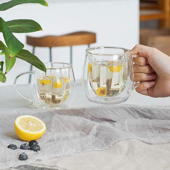 采用优质硼硅玻璃材质,比普通玻璃更坚韧,更能承受温度突变,双层玻璃隔热,可用于热咖啡、冰水、茶水、酒饮等饮料,长时间保温保冷,且不烫手,微波炉、冰箱和洗碗机安全。