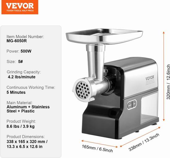 历史新低!VEVOR 500瓦大功率 电动灌肠绞肉机5.6折 71.99加元包邮!