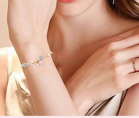 手链由晶莹剔透的水晶球与温润的粉白色珍珠串成,点缀一只精致的粉色蝴蝶吊坠,寓意美丽常伴、好运相随。礼盒内附赠一张同款蝴蝶图案的精美贺卡,是传递心意与美好祝愿的贴心之选。手链采用滑动扣设计,长度可在5.5至9英寸之间自由调节,轻松适配不同腕围,适合各年龄段女性佩戴。