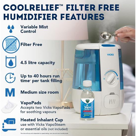 白菜价!翻新 Vicks VUL600C CoolRelief 4.5升 超声波冷雾加湿器2.5折 18.8加元!儿科医生推荐品牌!
