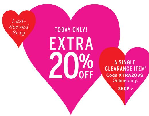 Victoria's Secret网店销售,情人节特卖,今日内使用折扣码:XTRA20VS 额外再打8折,满100美元使用折扣码:DELIVERY100 包邮,点击进入订购页面