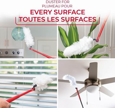Vileda 维丽达 Flex & Catch 强力除尘套装配备 3 英尺可伸缩手柄与加固型超牢固挂钩,确保一次性除尘掸替换装在清洁过程中稳固不脱落;柔性掸头可灵活包裹花瓶、灯具与盆栽等物品,轻松绕过障碍物深度除尘,清洁效果达传统羽毛掸的 3 倍。手柄可伸缩设计无需借助梯子即可清理高处与低洼区域,专利吸头支持 360° 旋转并可调至 6 个角度,实现更全面、高效的家居除尘体验。