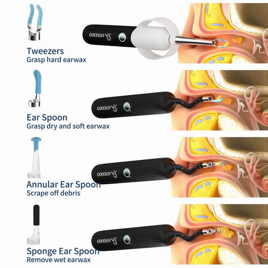 历史新低!VITCOCO 1080P 耳鼻口腔 多用途柔性可视耳勺套装4折 31.99加元包邮!