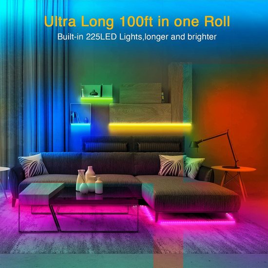 Volivo 100英尺 蓝牙智能 可随音乐变化 LED炫酷背景灯条5折 19.99加元!