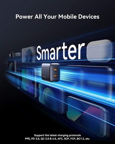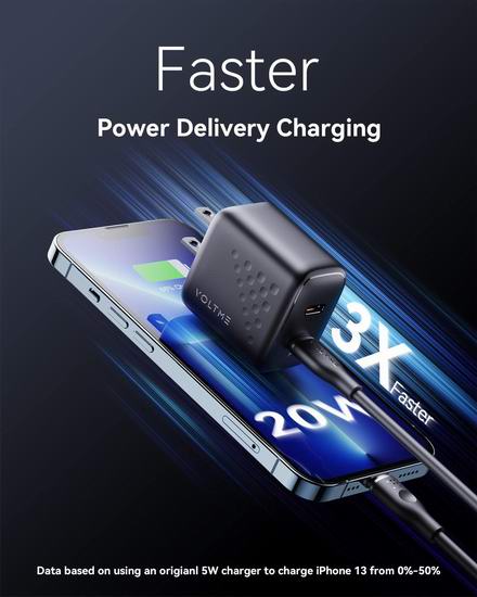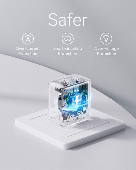 这款充电器支持 PD 3.0 和 PPS 快充,支持 5V、9V、12V 多电压充电,最大输出功率 20W,确保与大多数手机和平板电脑通用兼容。充电速度提升3倍,最大电流可达3A,可快速为您的设备充电。20W充电功率足以在约 30 分钟内将您的智能手机电量充至 50%,速度比您之前的 5W 充电器快三倍。充电器采用极简设计,方便携带。内置多重安全保护机制,确保在任何情况下都能安全充电。过压、过热和短路保护,加上可靠的V-Dynamic结构,确保充电安全。