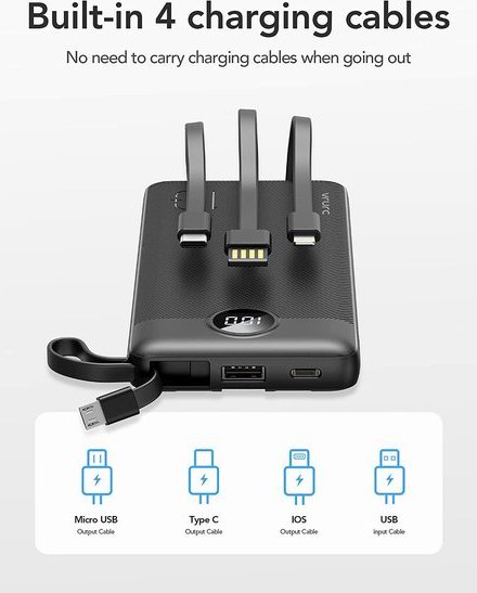 VRURC 10000mAh 便携式移动电源/充电宝 23.99加元限量特卖!内置3条充电线!