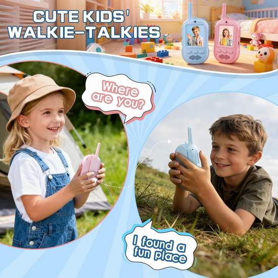 这款二合一视频语音对讲机配备2.0英寸屏幕,支持实时视频通话,让孩子们可以实时看到彼此并进行语音交流。内置高清摄像头和麦克风,画面清晰,声音悦耳,音量可调节,实现无缝沟通,并增添游戏乐趣。室内有效距离可达 320 英尺,室外可达 1000 英尺。凭借自动频道配对功能,无需任何设置,只需打开即可立即进行私密通话,避免串音或干扰。具有 4 种语音特效(原声、童声、怪兽声、男声)和趣味视频模式,激发无限创意。只需轻轻一按,孩子们就能变身机器人、外星人或怪兽,角色扮演、想象力游戏,带来无穷欢笑。内置可充电电池,充电1小时即可连续使用长达3.5小时或待机7天。