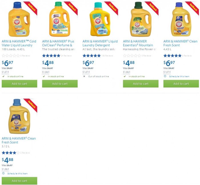Walmart网店销售,精选多款 ARM & HAMMER 洗衣液7折特卖,全站满50元包邮,选择邮局取货免邮,点击进入订购页面