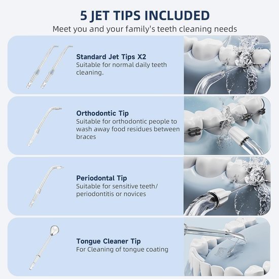 采用独特的水压和脉动结合,深层清洁牙齿和牙龈根部,去除有害细菌和碎渣,超越传统的刷牙,空气清洁和牙线。只需在水箱加入水,点在牙龈,开始清洁牙缝。如果牙龈敏感请添加温水。更简单更有效的牙线,你的嘴巴是你整体健康的入口,所以保持牙龈健康必不可少。每天一分钟,获得更清洁、更新鲜、更健康的口腔。同样适用于带牙套,假牙和牙齿纠正器的人群使用。