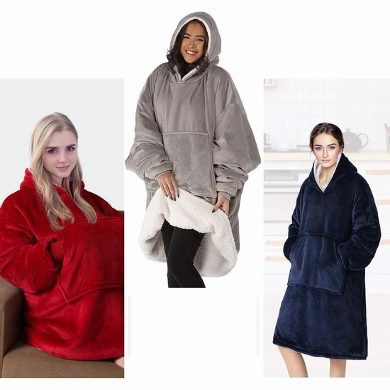历史新低!VASLON 加大号 御寒神器 可穿戴式 豹纹法兰绒毛毯/连帽衫5折 19.99加元!3色可选!
