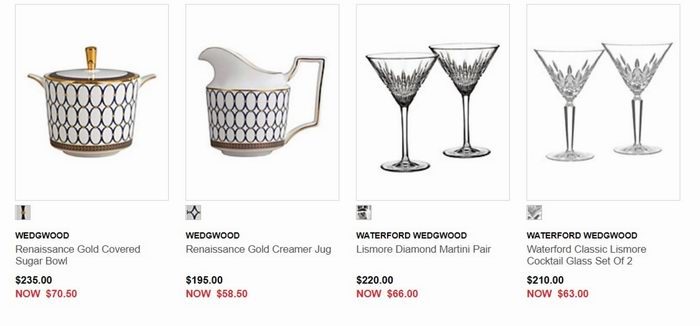 The Bay网店销售,精选 Wedgwood 水晶杯、餐具 3折起特卖!折后低至 58.5加元,满99加元包邮。点击进入订购页面。