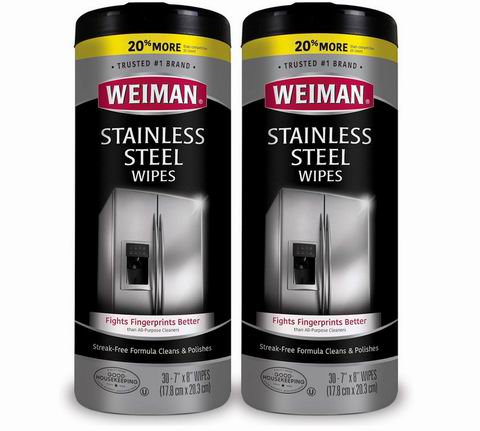 Weiman 不锈钢清洁湿巾(30片×2包) 21.98加元(原价 25.45加元)