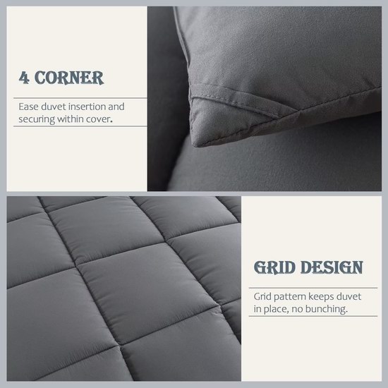 通过Oeko-Tex认证,不含有害物质,采用超细纤维面料,填充优质仿羽绒聚酯纤维,保暖性号,柔软舒适,轻盈透气,四季皆宜,提供极致舒适感,本套装包含1被子和2枕套(Twin为1枕套)。