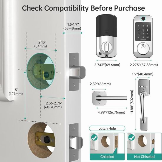 这款智能门锁支持多种开锁方式,包括指纹、密码、APP、IC门卡、钥匙、自动锁、电子钥匙、远程控制、Alexa语音控制、实时记录等,可设定多组密码和指纹,具有更大灵活性和安全性,就连老人和儿童也能智能快速开锁。可实时查看开锁记录,当有人回家或门锁异常时,App报警提示。内置USB-C接口,可在缺电时紧急供电。