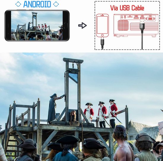 采用超迷你设计,内置Wifi,支持WiFi或USB直连手机或平板电脑,播放视频或游戏,支持HDMI、TF、AV、USB和VGA等多种输入方式,与笔记本电脑、游戏机、台式机、机顶盒、DVD播放器、摄像机、监视器等连接后播放电影、视频或游戏。物理分辨率1280*720P,最大支持1080P视频,通过调整与墙面距离(1-5米),可实现32~176英寸屏幕的投影,内置立体声扬声器及3.5mm音频输出插孔。