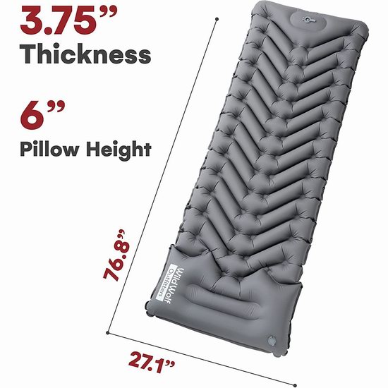 此款睡垫内置手压气泵,优质4D尼龙复合TPU面料,内置枕头,充气后,床垫厚度可达3.75英寸,让身体保持温暖干燥的同时,也远离不平整的地面。尺寸为76.8 x 27.1 x 3.75英寸,重量仅840克。