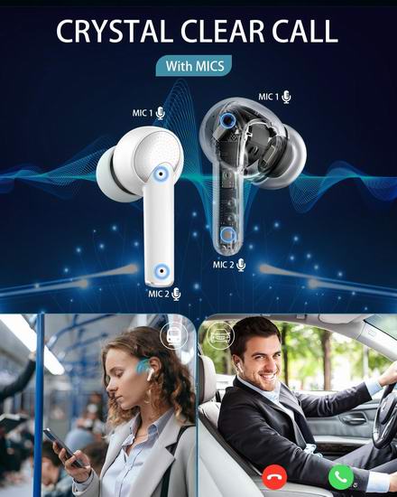 这款真无线耳机采用先进的蓝牙5.3技术,可在打开充电盒时快速连接,并支持触摸操作,让您轻松控制音乐、音量以及接听电话。兼容 HFP/A2DP/AVRCP/HID 协议,功能丰富。耳机配备13毫米特殊合金振膜,提供 HIFI 沉浸式立体声效果,过滤环境噪音,呈现高音悦耳、低音深沉的音乐体验。耳机盒支持为耳机补充电力6次,总续航时间高达42小时,外部 LED 显示让您随时掌握电量情况。IPX7 防水等级结合密封外壳设计,使耳机能够在运动、健身或旅行中承受汗水和雨水的考验。精致小巧的设计,单耳仅重 3 克,佩戴舒适无负担。