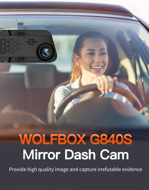 Wolfbox 后视镜行车记录仪具有一个 170 度的前镜头和一个 120 度的后镜头。 它提供了超宽 view 同时最大限度地减少安全驾驶和倒车的盲点。 它采用2.5D曲面屏幕,机身光滑。 前置摄像头采用 1296P 录制和低反射 LCD,由 6 层玻璃镜片制成,以增强夜视能力。 它允许您将媒体流式传输到后方view, 停车监控, GPS 功能, G-sensor, 碰撞启动记录, 循环记录, 视频延时和可调显示 view.