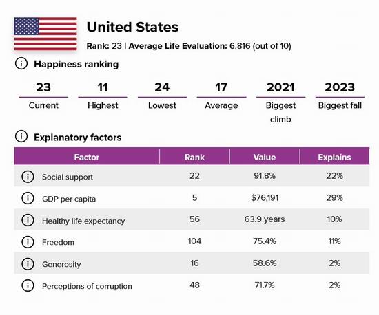 而加拿大的第25名,意味着其幸福感已落后于美国,这对一向以生活质量著称的加拿大来说可谓“警钟长鸣”。
