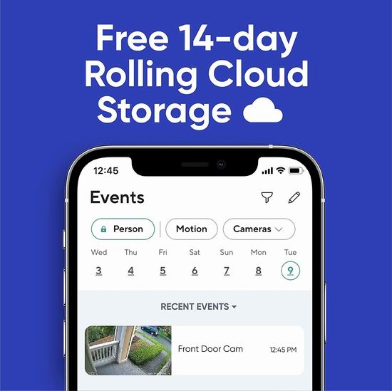 这是一款功能齐全,性价比极高的家用智能摄像头,IP65级防水,室内室外均可以使用,1080P全高清,f/1.6大光圈可捕获2倍以上的光线,彩色夜视更清晰,夜视效果比普通摄像头高25倍,内置扬声器和麦克风,可实现双向通话。当检测到动作或声音时,摄像头将会自动开始录制视频,同时向智能手机发送警报。先进的算法可识别烟雾报警和CO监视器的独特声音模式,它将警报发送到您的手机,以便您可以快速采取行动。无需订阅,免费提供最近14天滚动云存储。视频通过端对端加密安全地上传到AWS云,无需任何费用。支持32GB microSD卡进行24/7连续记录和存储。当卡被填满时,相机将覆盖最旧的文件。只需安排开始和结束时间以及您希望相机拍摄照片,即可自动捕捉美丽的时间推移视频一天的事件。