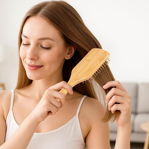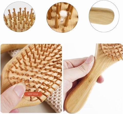 采用天然竹材制成,实用环保,打磨抛光,触感舒适,易于抓握,柔滑的竹制刷毛带来轻柔的梳理体验,轻松滑过秀发,最大限度减少拉扯、缠绕和不适感。圆头设计(仅两把扁平梳和一把圆梳配备)可舒缓头皮按摩,同时保护秀发免受断裂。套装包括:扁平梳、圆梳、宽齿尖尾梳,木质旅行护发套装。含两把不同尺寸的带气垫扁平梳,气垫上设有透气孔,可减少拉扯和断裂;一把宽齿梳,可轻柔梳理打结的头发(尤其适用于湿发);一把圆梳,用于打造蓬松造型;以及一把尖尾梳,用于精准分区。完美适用于所有发质,满足您日常护发的每一步需求。