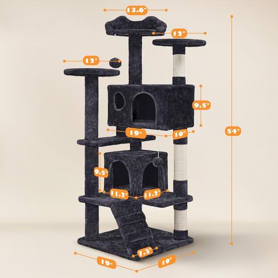 历史新低!Yaheetech 54英寸猫树公寓/猫爬架5.4折 69.99加元包邮!