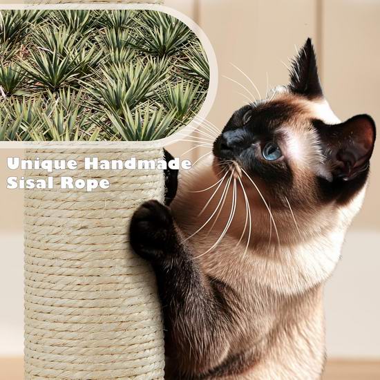 猫爬架满足猫咪喜欢待在高处,能看清周围环境的天性。由木头制作而成并覆盖人造毛皮,柱状结构则覆盖天然的草质麻绳,麻绳的气味可以让猫回归自然。这主要是为了吸引猫在上面磨爪,防止猫抓坏其它家中物品。这款带2个小型猫房间,多层平台空间让喵星人呆得更舒适。外形尺寸为49.5L x 49.5W x 137.2H厘米。