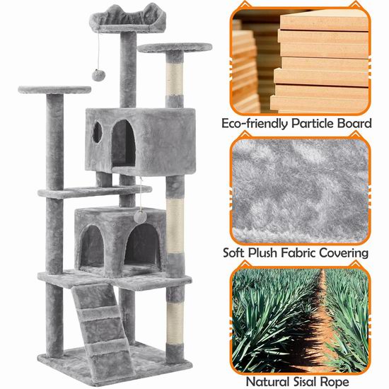 历史新低!Yaheetech 62英寸大型猫树公寓/猫爬架5.4折 76.13加元包邮!