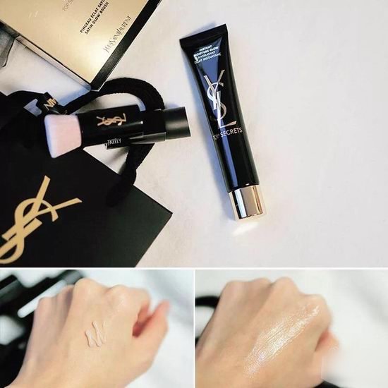 YVES SAINT LAURENT Moisture Glow 黑丝缎妆前乳:黑丝的这款亮颜亮肌乳,就是粗荒肌的福音,能让底妆更加服帖,保湿力度很棒哦,又能让肌肤水油平衡达到清爽不油腻的效果,粉色凝露质地,刚抹开十分水感,吸收后非常平滑水嫩哦,而且味道很好闻,重点是不会搓泥!可以单独使用也可以在涂抹粉底液前后使用~
