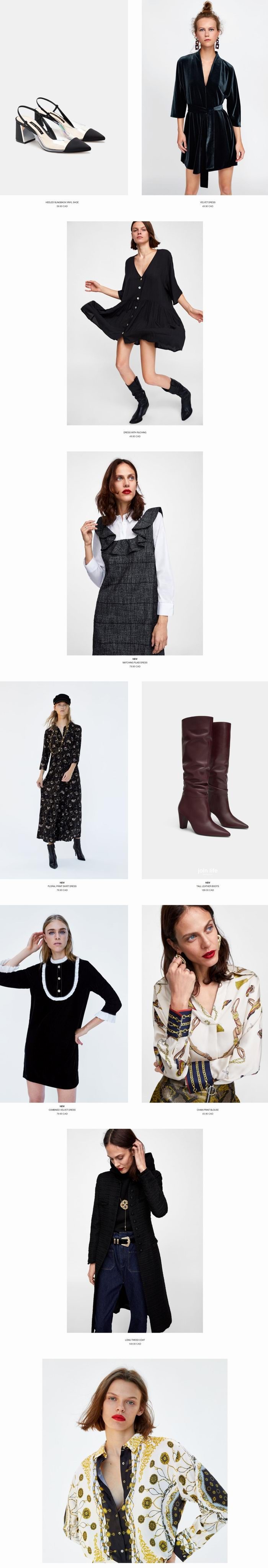 Zara网店销售,2018秋季时尚服饰上市, 运费4.95加元,满50加元包邮,店内取货免邮,点击进入订购页面。
