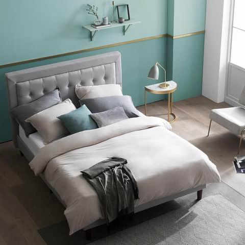 Zinus Dachelle 软垫平台床架兼具经典设计与实用功能,采用簇绒床头板与中性色调织物面料,搭配坚固的木质板条与钢制框架,兼顾美观与耐用。内置高密度泡沫填充,提供舒适支撑,特大号承重可达 700 磅。无需弹簧床垫,适用于乳胶、记忆海绵及弹簧床垫,延长使用寿命。所有零件与工具均整齐收纳于床头板拉链隔层中,两人一小时内即可轻松完成组装。