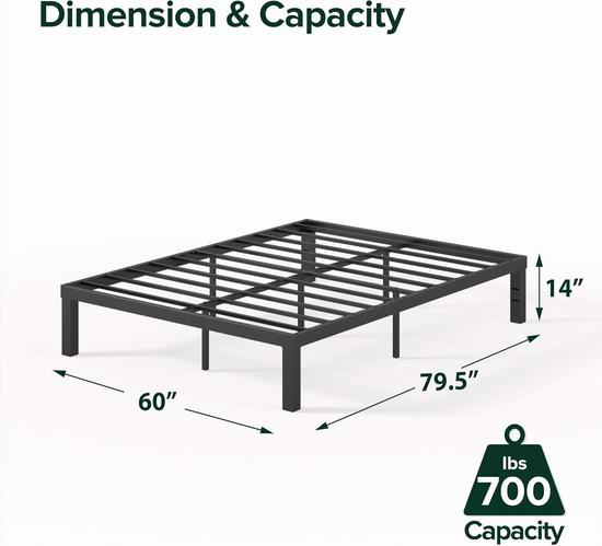历史新低!Zinus Quick Lock 14英寸 Queen 黑色金属床架4.4折 82.14加元包邮!