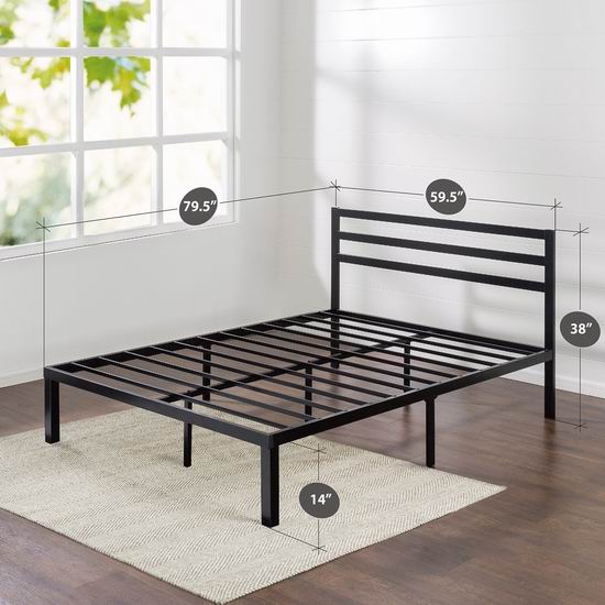 近史低价!Zinus Quick Lock 14英寸 Queen 黑色金属床架(带床头架) 139.59加元包邮!
