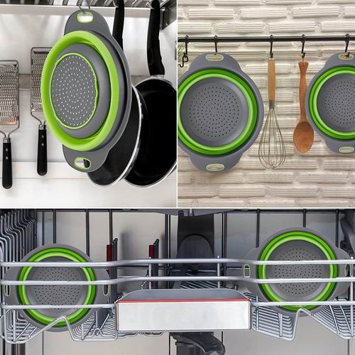 符合人体工程学、节省空间,可折叠,耐热高达 302ºF,可冲洗大多数蔬菜水果,如意大利面、意大利面、土豆、西兰花、青豆、胡萝卜、菠菜和其他蔬菜等。